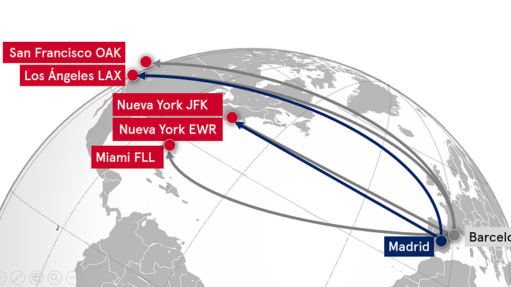 • A partir del 15 de julio, Norwegian conectará la capital de España con Los Ángeles, y con Nueva York JFK dos días después, con tarifas a partir de 199 euros por trayecto, tasas incluidas. • Ambas rutas operarán todo el año, tanto en verano como en invierno; la compañía ofrecerá 251.000 plazas entre Madrid y Estados Unidos durante el primer año completo de operaciones.