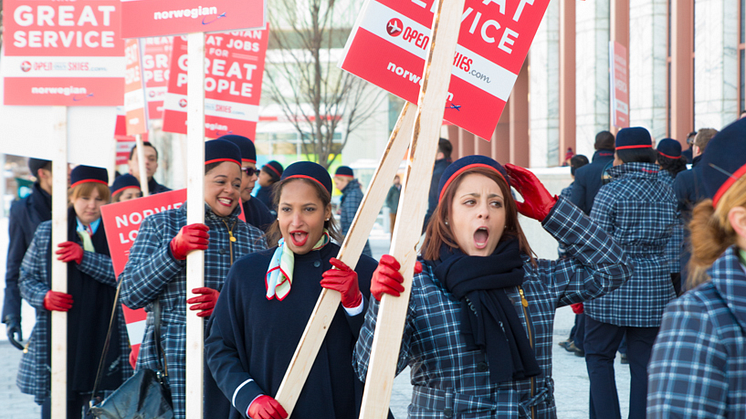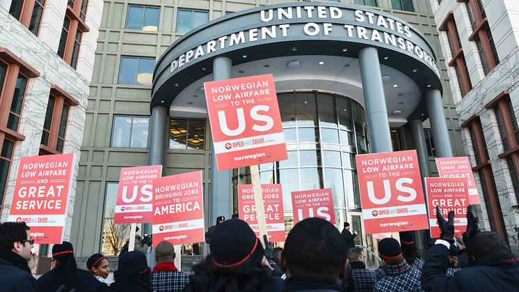Unos cincuenta tripulantes de cabina de pasajeros (TCP) de Norwegian se han concentrado esta mañana en la escalinata del Departamento de Transporte de los Estados Unidos, en Washington, DC. De este modo, quisieron expresar su apoyo a solicitud de operador extranjero por parte de Norwegian Air International e instaron al Departamento a aprobarlo sin más demora. La solicitud está pendiente desde hace más de un año.