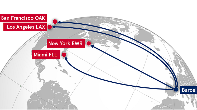 Las rutas anunciadas hoy mejorarán significativamente la conectividad de Barcelona con Estados Unidos, y muy especialmente con California –un mercado con el que Cataluña ha sufrido una falta crónica de conexiones directas. Según datos publicados por el Comité de Desarrollo de Rutas Aéreas de Barcelona, el año pasado 145.000 pasajeros volaron haciendo escala entre Barcelona y California. Con el lanzamiento de hoy, Norwegian ya ofrecerá, por si sola, 170.000 plazas directas a California en el primer año completo de la operación de su base de largo radio en Barcelona, divididas éstas a partes iguales entre San Francisco y Los Ángeles.
