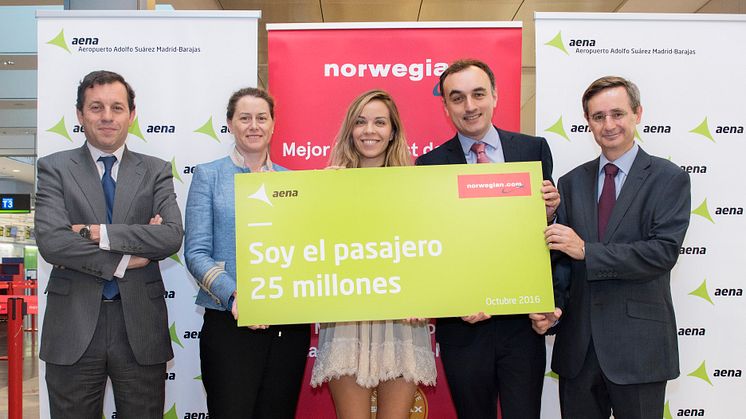Norwegian, la ‘Mejor low-cost en Europa’ por cuarto año consecutivo y la aerolínea de mayor crecimiento en España, ha dado hoy la bienvenida, en Barajas, a su pasajero 25 millones en España.