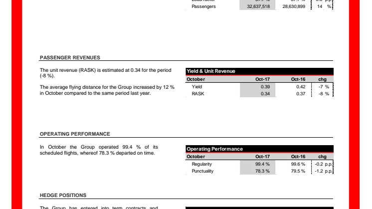 Una vez más, Norwegian transportó más de tres millones de pasajeros en un solo mes, con más de 3,1 millones de pasajeros transportados en octubre, un incremento del 14% en comparación al mismo mes del año anterior. El mayor crecimiento se produjo en las rutas intercontinentales de Norwegian, cuyo volumen de pasajeros se incrementó en un 56%.