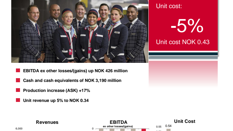 La ocupación media durante el primer trimestre fue del 85%, dos puntos porcentuales por encima del mismo periodo del año anterior. La aerolínea transportó cerca de seis millones de pasajeros, un incremento del 17%. El crecimiento más fuerte se produjo en Londres Gatwick, donde la aerolínea opera vuelos tanto de corto como de largo radio. El crecimiento en España fue también considerable: 1,22 millones de pasajeros, un 19% más que en el primer trimestre de 2015. En los países nórdicos el número de pasajeros se incrementó, tanto en volumen como en cuota de mercado.